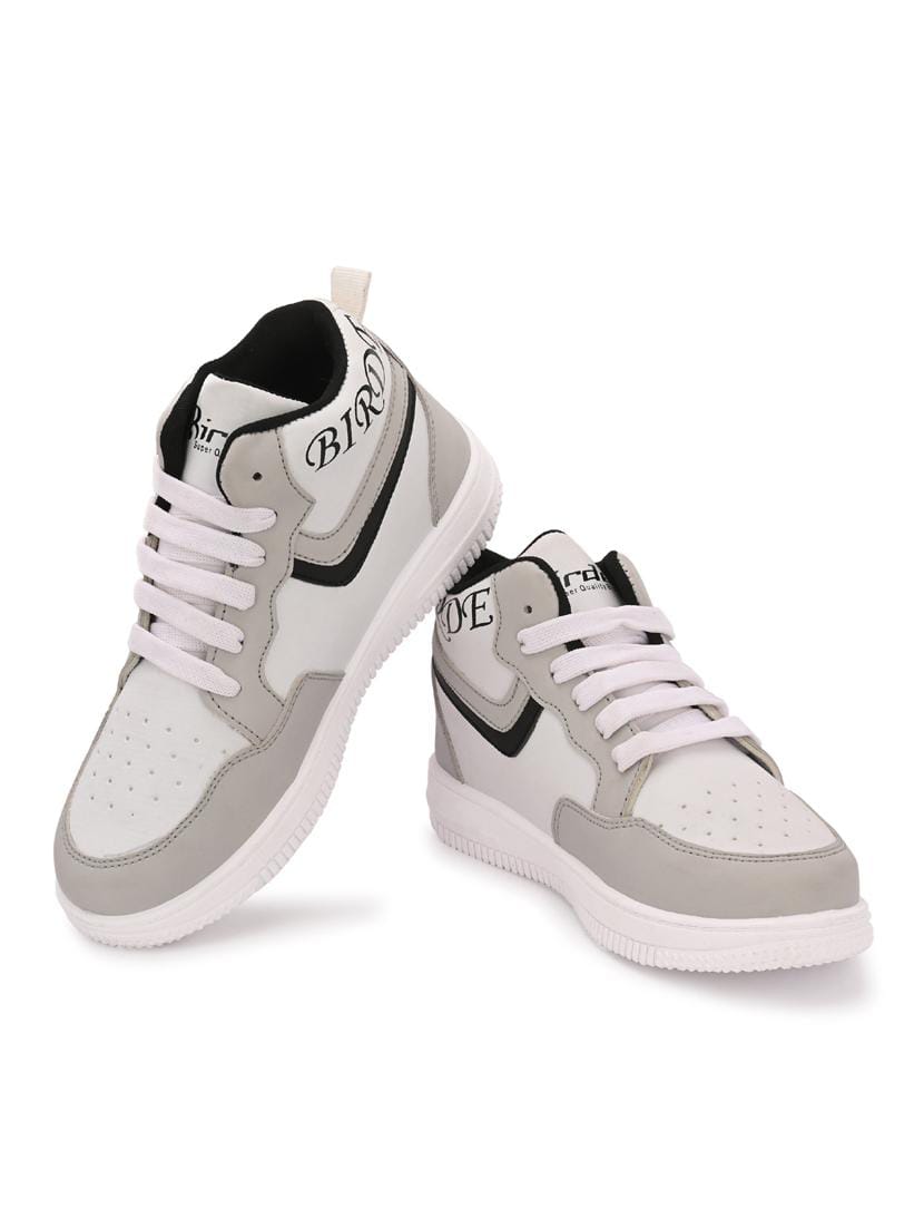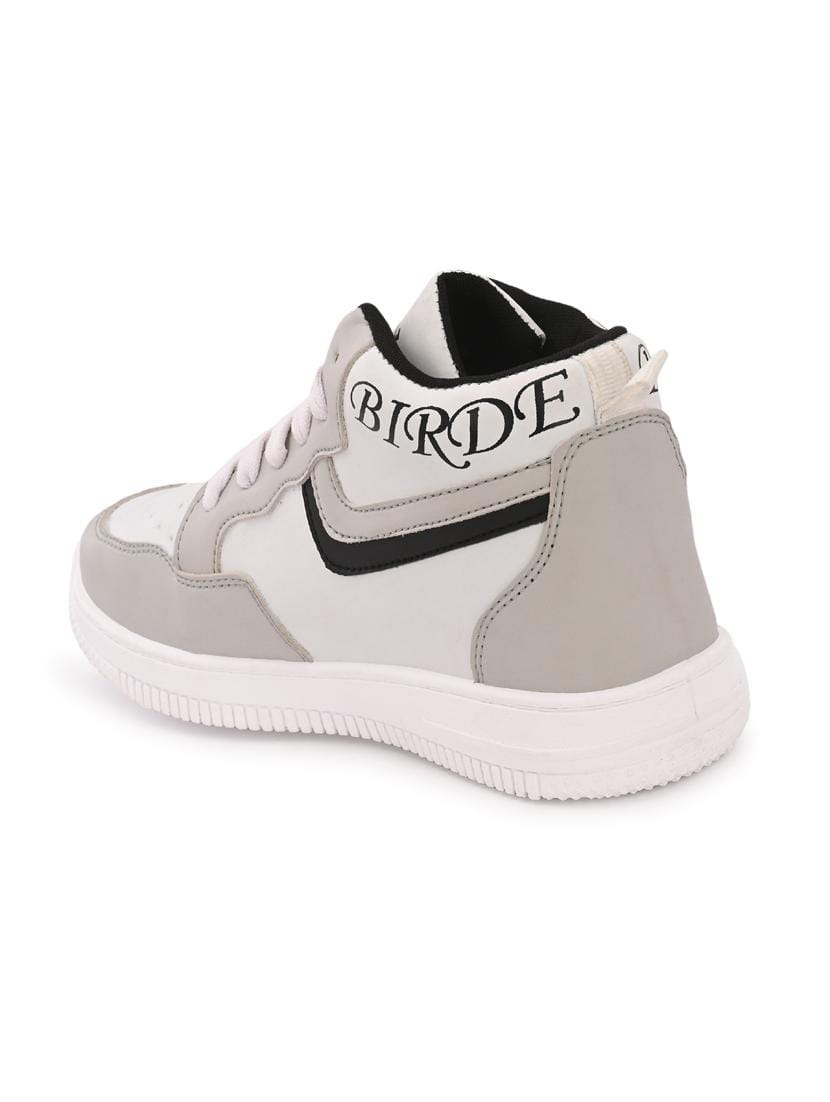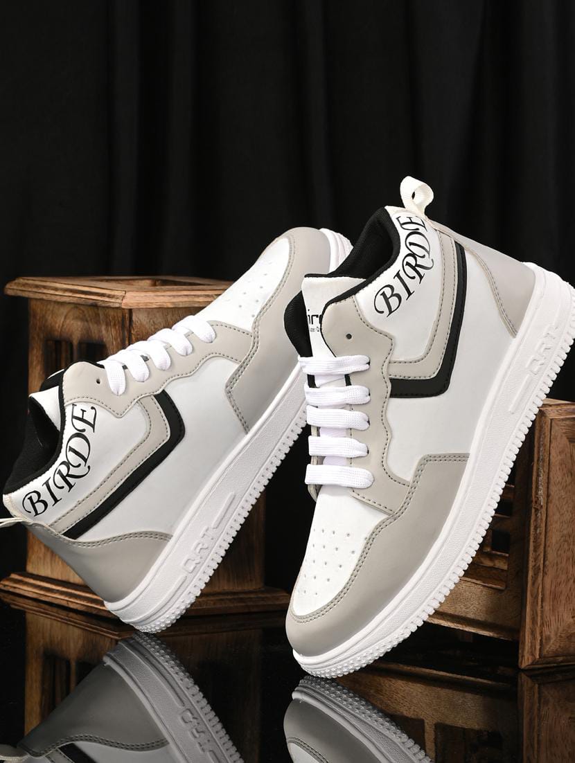 The Birde sneakers feature a clean and sophisticated color combination of white, grey, and black that gives them a classy urban appeal.